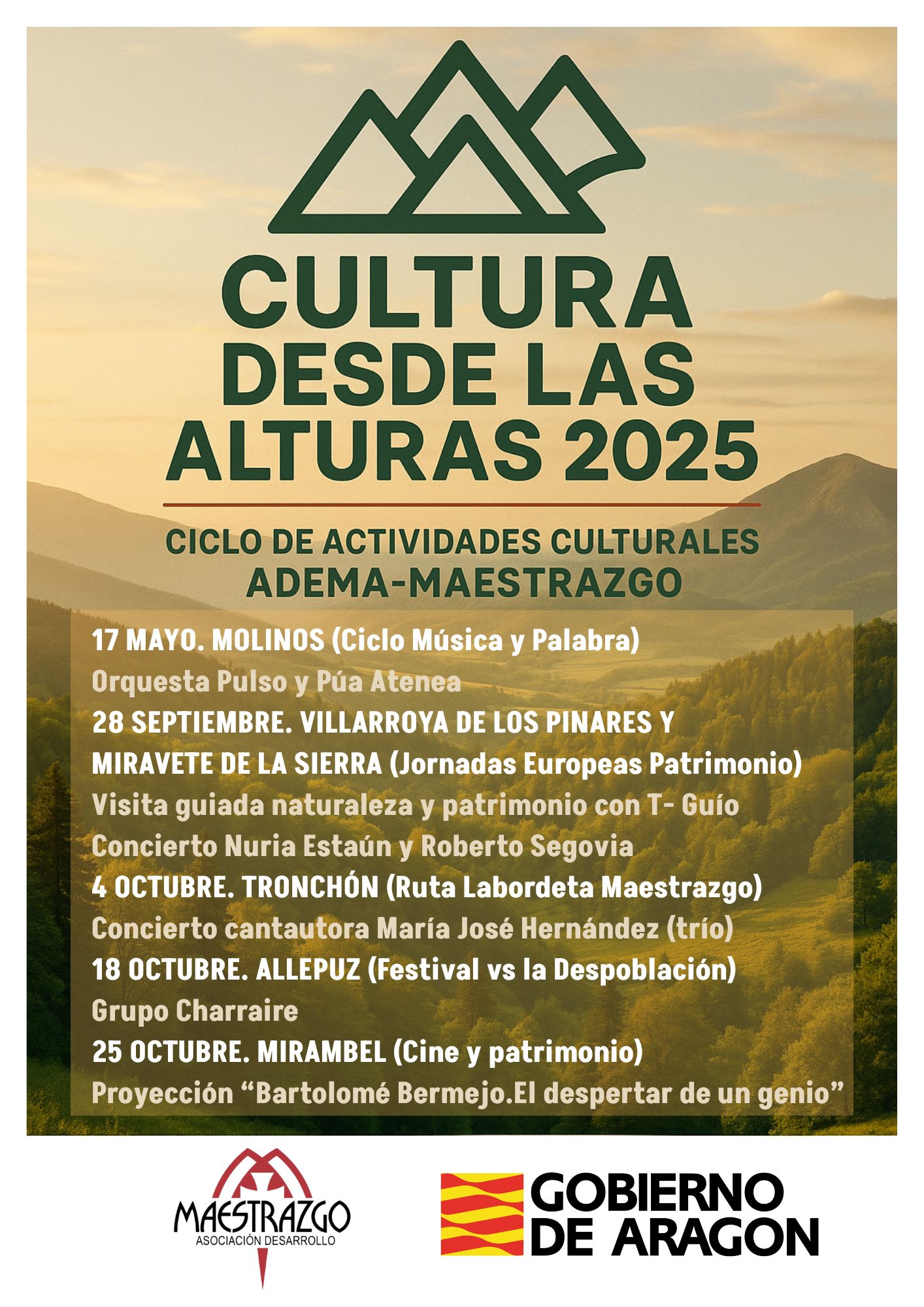 La Asociación para el Desarrollo del Maestrazgo (ADEMA) organiza el ciclo de actividades “Cultura desde las alturas”, que este año cumple su segunda edición. El proyecto pretende llevar actividades y acciones culturales a diferentes municipios de la Comarca del Maestrazgo en fechas fuera del periodo...