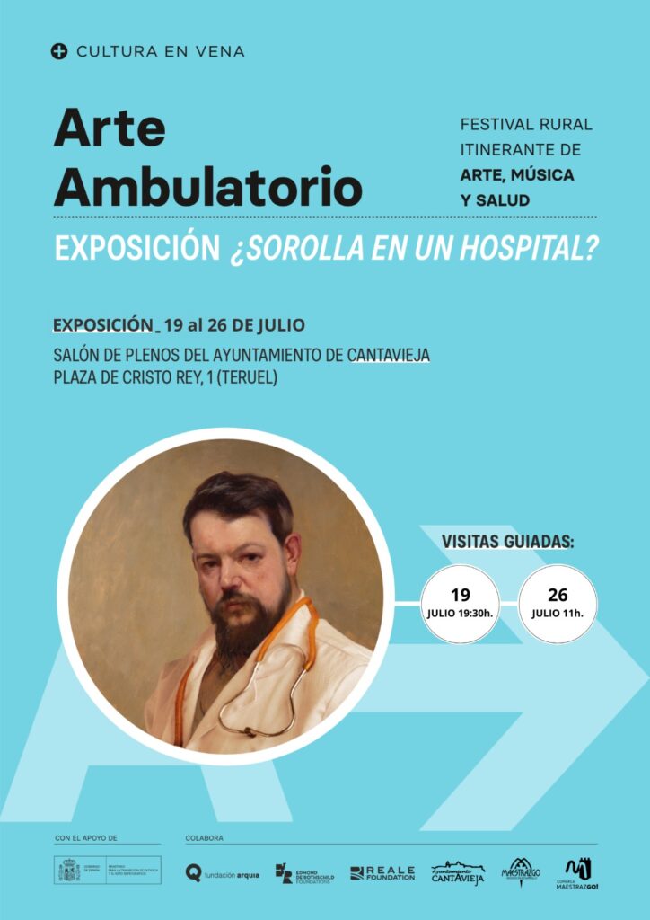 El viernes 19 de julio a las 19:30 h la Asociación para el Desarrollo del Maestrazgo ADEMA y Fundación Cultura en Vena presenta en el Salón de Plenos del Ayuntamiento de Cantavieja la exposición itinerante «¿Sorolla en un hospital?», que estará disponible para vecinos y visitantes desde el 19 de Julio hasta el 26 de julio.